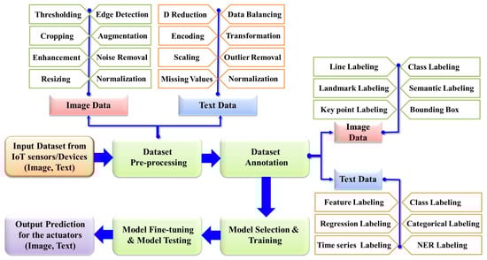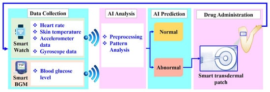 However, prior to the application of AI algorithms, a common requirement is data preprocessing to address the issue of noise prevalent in sensor data, which is a challenge for all sensors. For instance, in heart rate monitors, noise impact can be mitigated using noise removal or outlier detection algorithms such as first-order low-pass filters and wavelet transformation algorithms [23] or the spectral filter algorithm for motion artifact and pulse reconstruction (SpaMA) [24]. Two-stage algorithms can also be employed for noise artifact elimination and spectral analysis [24]. Similarly, readings from blood sugar monitoring devices such as PPGs are influenced by the testing site and environmental conditions. These issues can be mitigated through filtering techniques such as the Butterworth filter, which operates within a frequency range of 0.5–8 Hz [25]. In CBGM, noise removal approaches include adaptive iterative filtering and fast discrete lifting-based wavelet transform (LWT) [26] as well as multi-filtering augmentation [27]. Pulse oximetry sensor data often utilize adaptive filtering techniques [28], while accelerometer and gyroscope sensors benefit from Butterworth high-pass filtering [29], complementary filters, and Kalman filters [30] for error assessment and enhanced accuracy. Artifacts can be effectively removed from EEG sensors using graph signal processing [31]. Motion artifacts can be reduced using analytical software tools [32], enhanced peak and valley detection algorithms [33], or through Fourier transformation [34].