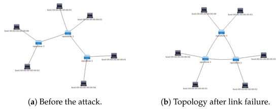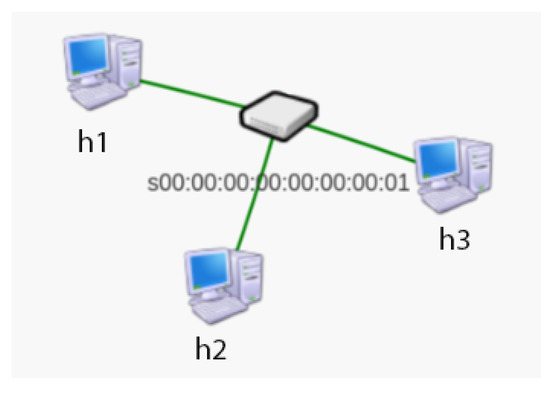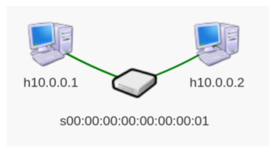A simulation of a controller failure was conducted in Mininet. A minimal topology was built—two hosts connected to a switch, as shown in Figure 5.