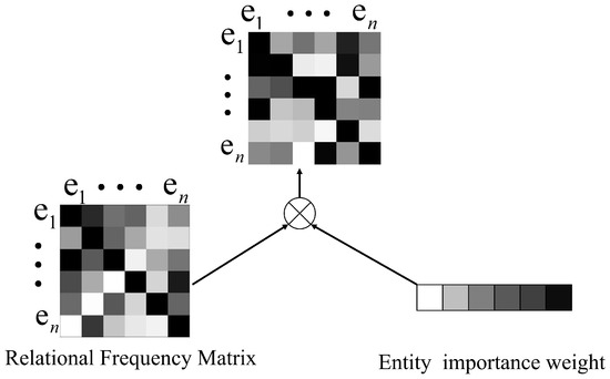 Firstly, we recognize that KGs contain a wealth of information among entities, which is crucial for understanding the semantics of these entities. The significance of each relation within the KG is quantified by evaluating its frequency. Subsequently, we compute the PageRank score for every entity within the knowledge graph. This score serves as a global indicator of an entity’s importance, enriching the relations’ feature matrix with insight into the relative importance of each entity within the overall graph and the importance of its relations. The implementation of the PageRank method follows its classical formulation, which is articulated as follows: