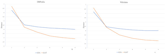 Our GIA model was implemented using the PyTorch framework. The trainable parameters in the model were initialized using the Xavier initializer, ensuring a reasonable distribution of parameters at the beginning of the training. We optimized the loss function using the Adam optimizer. As for hyper-parameters, the learning rate was set to 0.001, the number of layers L in the GAT was set to 2, the number of negative samples per entity was set to 5 to enhance the model’s discriminate ability, the margin was set to 1, and triplet embeddings were set to 256, 128, and 256 respectively. The initial value of the dropout was uniformly set to 0.2. In the KG encoder, the damping factor for the PageRank algorithm used in the global feature encoding was set to the default value of 0.85. For the damping factor in graph diffusion enhancement, we employed a grid search method to determine the optimal value from the set {0.05, 0.15, 0.25, 0.35, 0.45}. The graph diffusion parameter is set to 0.0001, and the initial value of p for graph perturbation enhancement was set to 0.1.