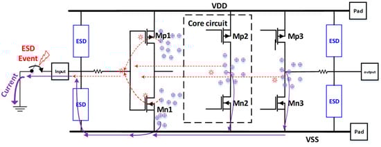 - Zhan, R.; Feng, H.; Wu, Q.; Xie, H.; Guan, X.; Chen, G.; Wang, A. ESDInspector: A New Layout-level ESD Protection Circuitry Design Verification Tool Using a Smart-Parametric Checking Mechanism. IEEE Trans. Comput.-Aided Des. Integr. Circuits Syst. 2004, 23, 1421–1428. [Google Scholar] [CrossRef]