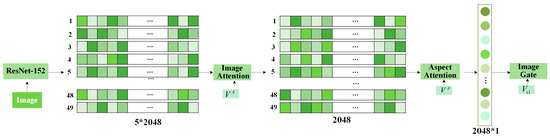 In aspect-level sentiment analysis, since many sample sentences are very short and contain information that is often insufficient for a single-text model to make a correct judgment, visual information is very important for analyzing sentiment polarity, which contains rich content that can effectively enhance the robustness of the framework. In order to solve the problem of difficulty in training neural networks with too much depth, the residual network [38] was first proposed and it has shown amazing performance in the image domain. Considering its excellent performance, here we use the pre-trained ResNet-152 for image extraction; its use of residual connectivity preserves the original features, making the learning of the network smoother and more stable, further improving the accuracy and generalization of the framework:
