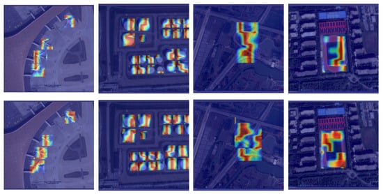 As depicted in Figure 5, the first row exhibits the heat map produced by the baseline method, while the second row showcases the heat map generated by our proposed approach. It can be seen that when using the DAttention module, the model’s feature information is richer and can better cover the target area. Meanwhile, as shown in Table 3, when using DAttention alone, the model accuracy increases by 0.6% compared with the baseline, indicating that DAttention can significantly enhance the model’s modeling of long-range targets, thereby improving detection accuracy.