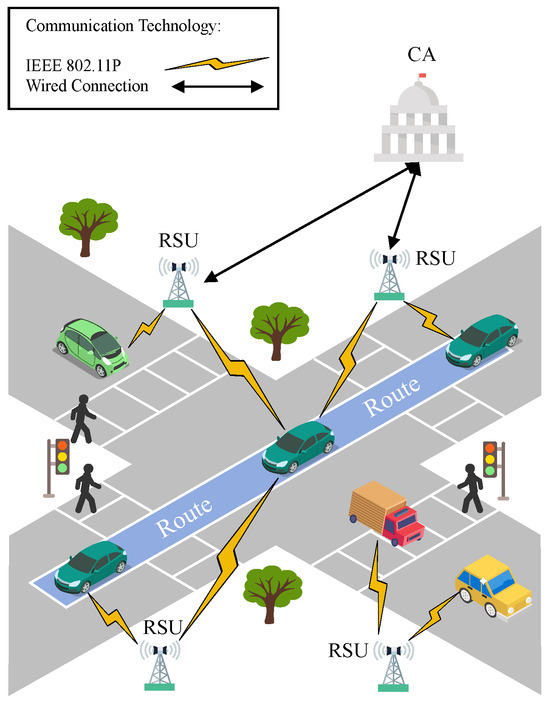 - RSU: RSUs are roadside-installed infrastructure that are primarily responsible for collecting and processing data from vehicles to provide real-time information on traffic conditions and related services. In addition, they work with the CA to ensure the security of vehicle identities and communications. Through the deployment of RSUs, vehicles can effectively communicate and collaborate with road infrastructure and other vehicles.