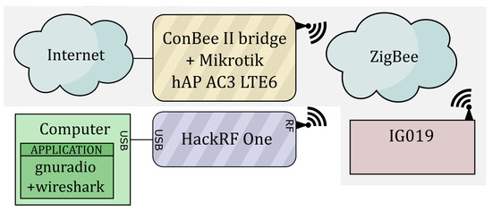 - Akestoridis, D.G.; Harishankar, M.; Weber, M.; Tague, P. Zigator: Analyzing the security of zigbee-enabled smart homes. In Proceedings of the 13th ACM Conference on Security and Privacy in Wireless and Mobile Networks, Linz, Austria, 8–10 July 2020; pp. 77–88. [Google Scholar]