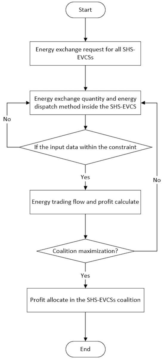 In the cooperative game model within the SHS-EVCS P2P trading framework, each EVCS functions as both a producer and a consumer, indicating that multiple entities reach a consensus. Therefore, the game-theory-based P2P process, as depicted in Figures 5–15, follows these steps and Figure 4 shows the game-theory-based P2P flow chart: