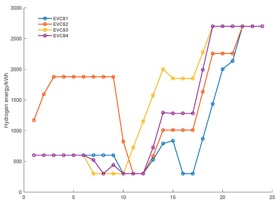 and represent the output power and the quantity of hydrogen consumed by the fuel cell, respectively. is the energy conversion efficiency, which is 70% [].