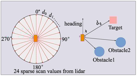 - Marchesini, E.; Farinelli, A. Discrete deep reinforcement learning for mapless navigation. In Proceedings of the 2020 IEEE International Conference on Robotics and Automation (ICRA), Paris, France, 31 May–31 August 2020; pp. 10688–10694. [Google Scholar]