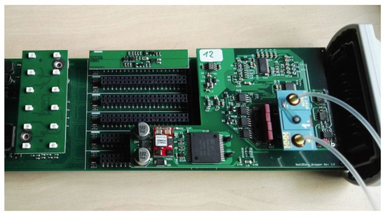In order to minimise the influence of electromagnetic fields, short connection paths were introduced. The output signal was amplified and an analogue-to-digital converter was used for the digitisation of an analogue signal. Interface adaptations were made, including connection to a bus interface for further signal processing (Figure 9). All of the aforementioned adjustments were subjected to extensive laboratory testing and validation to guarantee that the control and readout electronics of the ISFET multi-sensor module were fully compliant with the specified application-specific requirements [41].