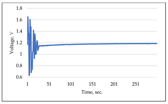 In this context, it is of utmost importance to determine the optimal stable operating point ( and ) for the operation of the ISFET. This parameter, in conjunction with several others, is of particular significance. To achieve this, the operating point of the ISFET should be analysed in conjunction with the current–voltage characteristics of the ISFET. It is also crucial to consider the detection range of the ISFET sensor, which can vary depending on the specific sensor type. The maintenance of and as a constant supply current/voltage of the ISFET sensor offers a better signal-to-noise ratio; a more stable output signal is achieved in comparison to the effects of potential fluctuations in temperature and therefore a better quality of the output signal of the ISFET [29,30]. The operational point of the ISFET is typically provided by the manufacturer and can be modified during the manufacturing process, and subsequently during operation, contingent on the specific requirements of the application [23].