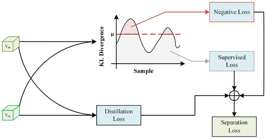 is the prediction made by the teacher network model for sample i, and is the prediction made by the student network model for sample i. We believe that the predictions of the student and teacher network models for the same sample should maintain similar characteristics. Therefore, we used KL divergence to measure the distance between the predictions of the student and teacher network models: