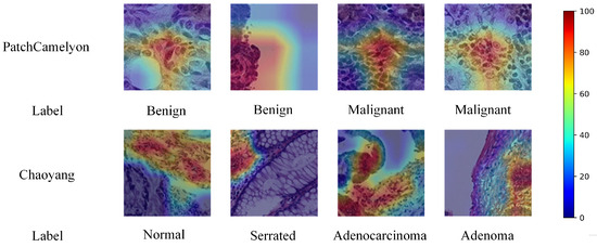Grad-CAM visualization examples for the PatchCamelyon dataset and Chaoyang dataset.