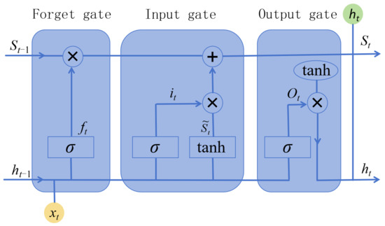 The cell state update enables the LSTM network to capture long-term dependencies within the input meteorological data. represents the candidate cell state, constrained through a hyperbolic tangent function: