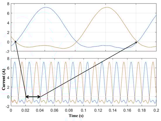 The b2D DMSI has continuous input currents, as shown in Figure 10. In addition, the HF ripple in these currents is very small and close to zero, which is an advantage of this type. The rest of the inverter’s waveforms are similar to the b1D type.
