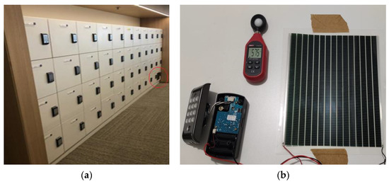 Demonstrated (a) Cabinet with electronic locks and (b) Self-powered development with organic photovoltaic.