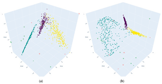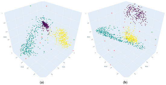 The non-regularized graph shows that the points representing the network’s features are loosely packed. This sparsity within the clusters suggests that the model has learned to create low-density regions in the feature space for each class. The flexibility allows the model to capture intricate details specific to the training dataset. However, such a detailed fit might not be generalized well to new data and can be particularly vulnerable to adversarial attacks that exploit these overfitted aspects, as shown in various research studies [56,57,58,59]. This loose packing means that a small perturbation—often imperceptible to the human eye but easily constructed by an adversarial attack—might be enough to shift a data point across the boundary into a neighboring cluster, resulting in misclassification.