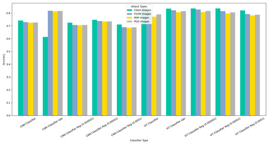 In our study, we compare the effectiveness of our proposed methodology against both adversarially trained models and state-of-the-art (SOTA) CNN and vision transformer (ViT) models. The results are comprehensively presented in various figures and tables. Specifically, we evaluate the performance of our regularized CNN and ViT models, demonstrating significant improvements in clean data accuracy and adversarial robustness.