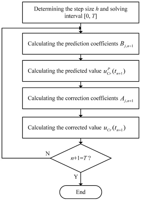 Based on the above, one can find that the ZVS QRC with a fractional-order resonant capacitor can be governed by piecewise-smooth fractional-order models. In order to reveal it’s resonant characteristics, it is essential to calculate the fractional differential Equation (4), so that the initial-value problem of the fractional-order differential equation arises.