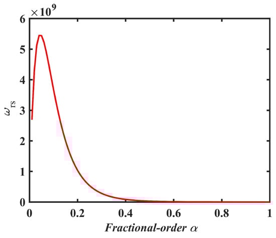 In can be seen in Equation (24) that the resonant angle frequency of the converter is highly dependent on the values of its resonant elements. Tolerances in these components can lead to variations in the actual resonant frequency from its designed value. This shift can reduce the efficiency of the energy transfer within the circuit. The influence on resonant angle frequency of different FO αs is shown in Figure 13. It can be seen that, with the increase of , the resonant angle frequency increases first and then decreases; when equals 0.05, it reaches the peak value.