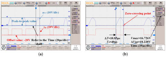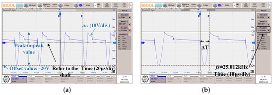 Experimental waveforms of : (a) Time = 20 μs/div; (b) Time = 10 μs/div.