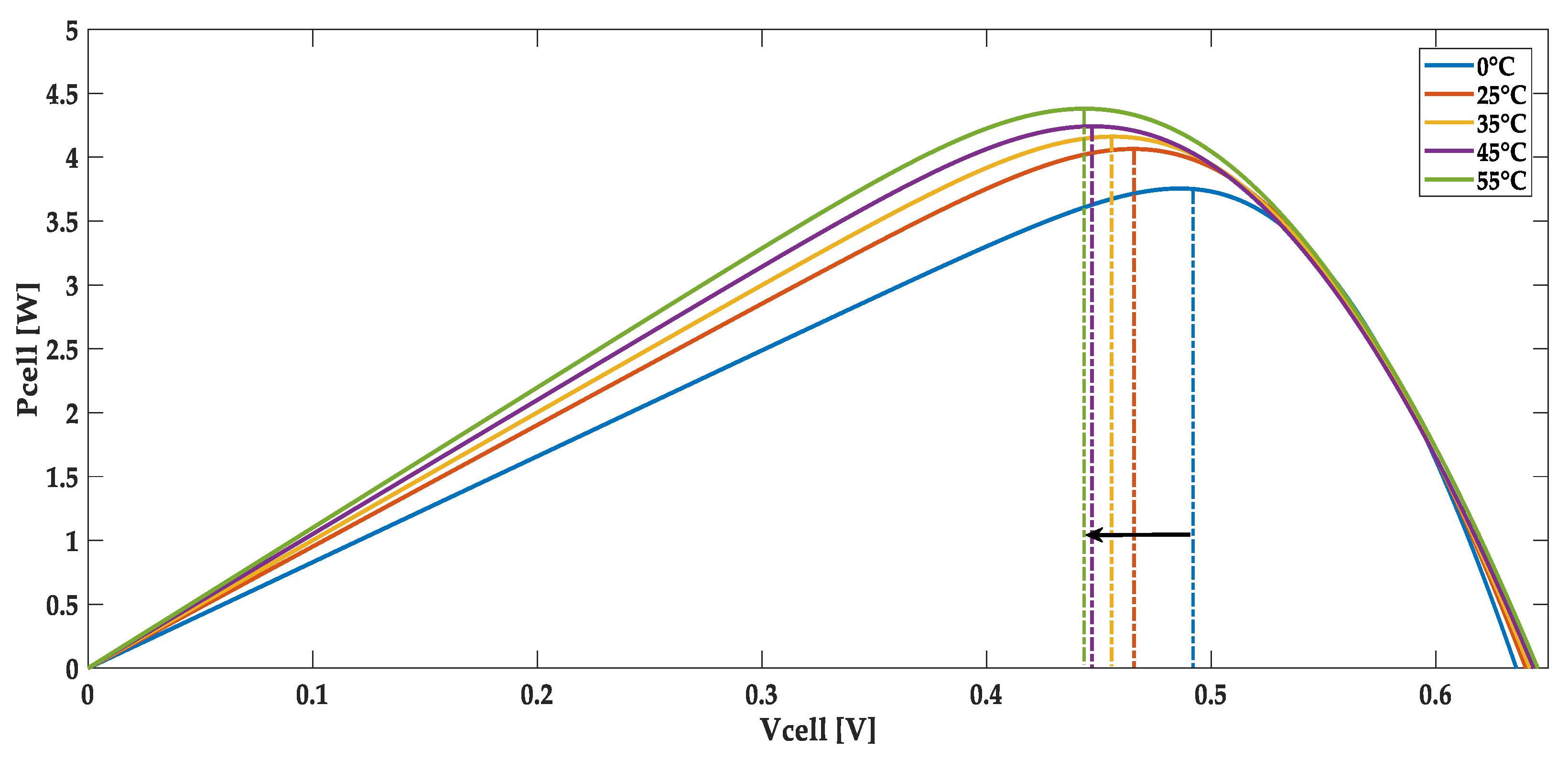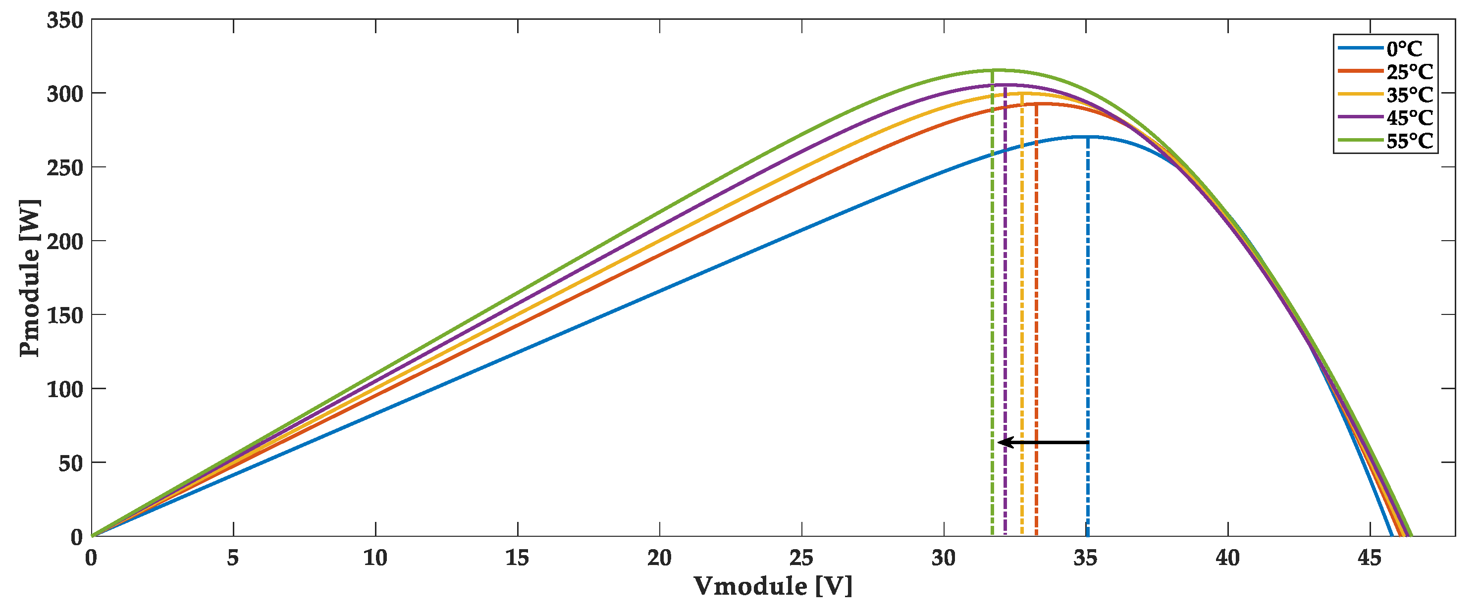 4.1. PV System MPPT Control in the Presence of Irradiance and Temperature Variations