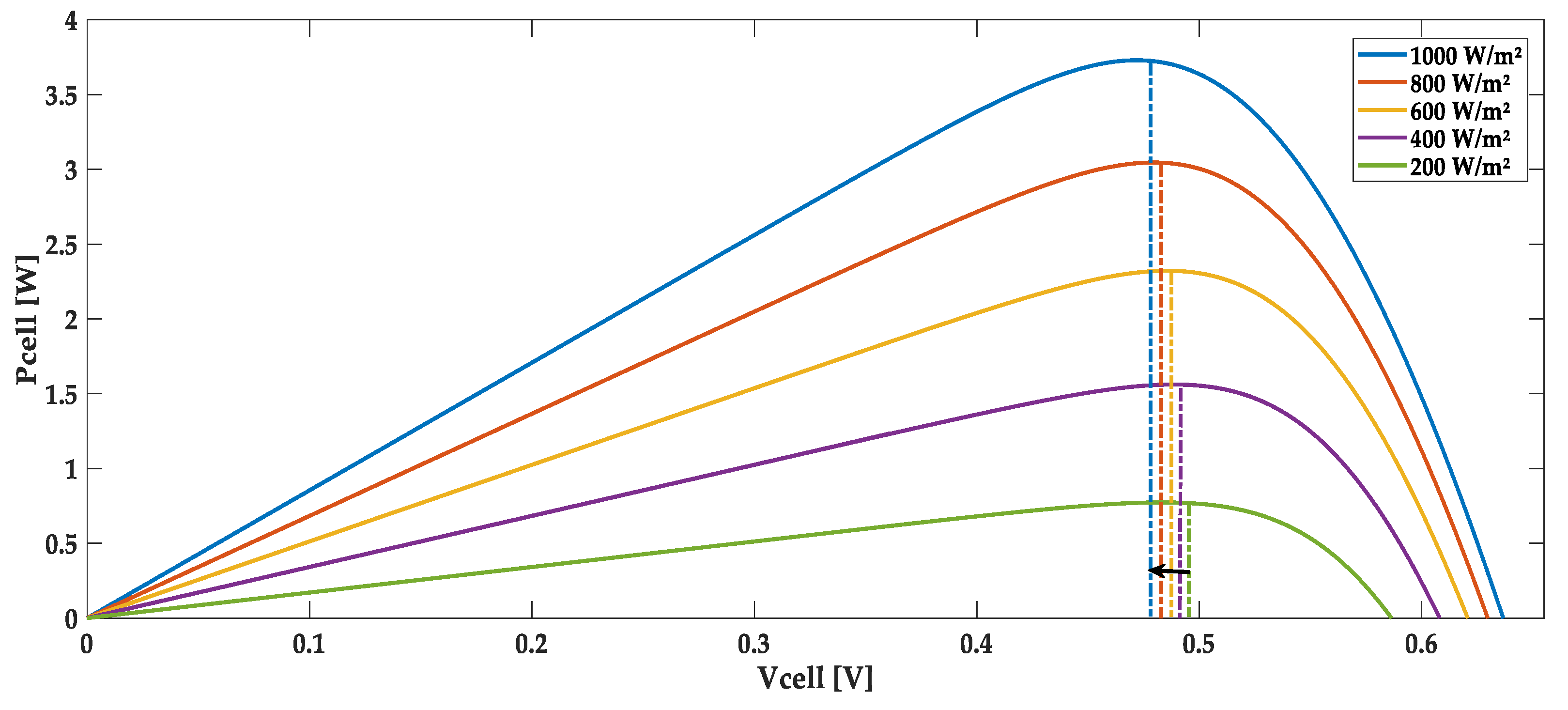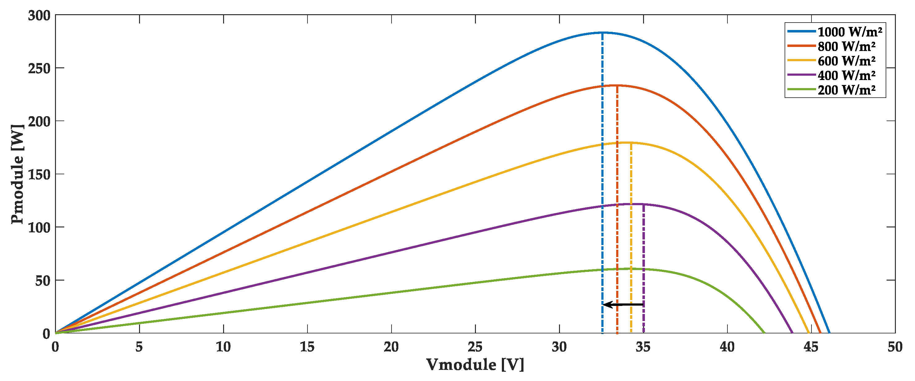 - Villalva, M.G.; Gazoli, J.R.; Filho, E.R. Modeling and circuit-based simulation of photovoltaic arrays. In Proceedings of the 2009 Brazilian Power Electronics Conference, Bonito-Mato Grosso do Sul, Brazil, 27 September–1 October 2009; pp. 1244–1254. [Google Scholar] [CrossRef]