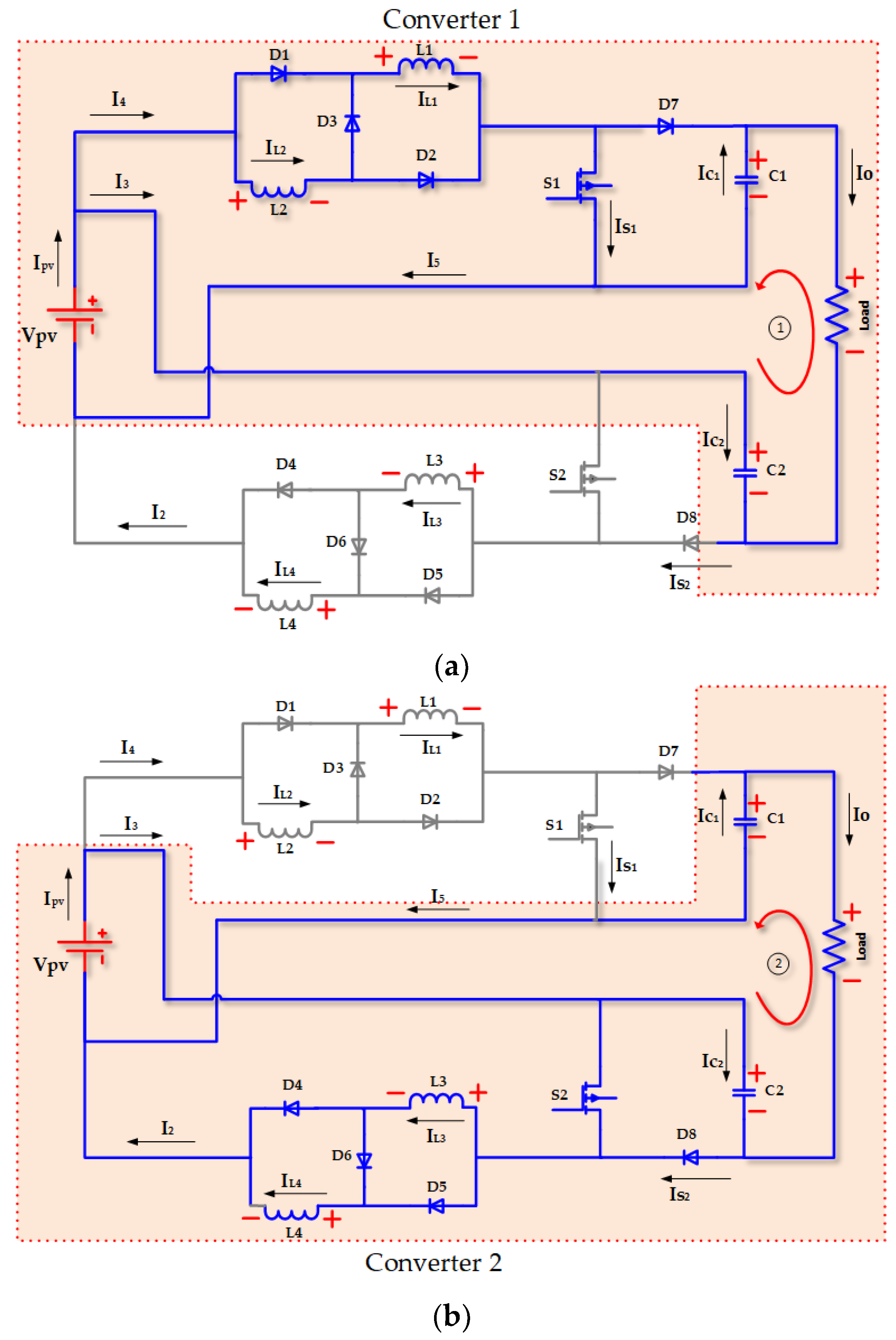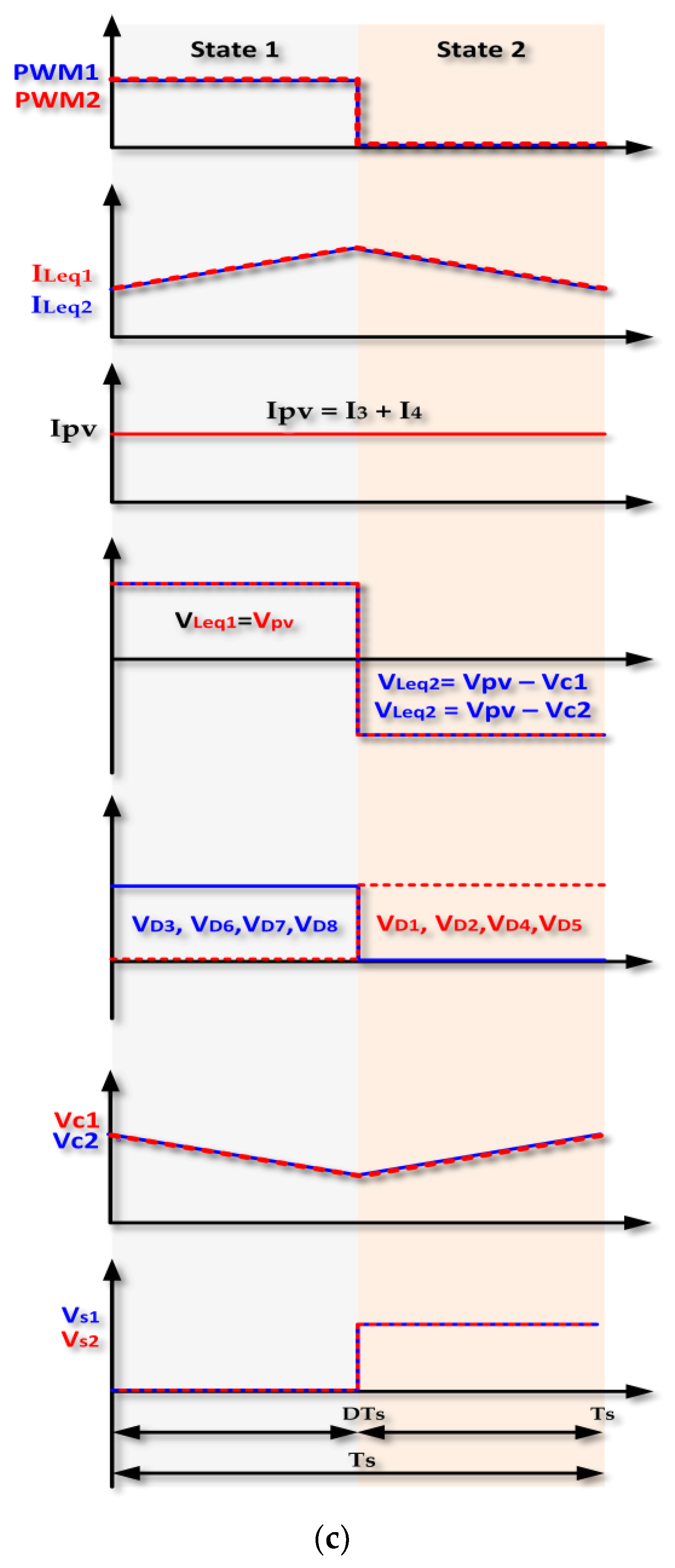 3.2. Considered DC-DC Converter Topology and Operating Analysis Based on Continuous Conduction Modes
