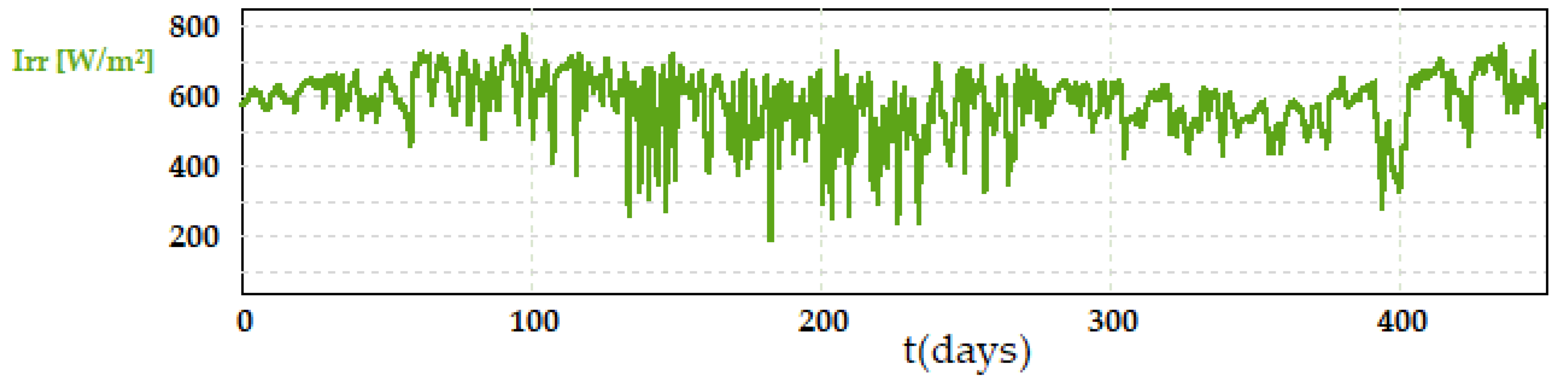 Irr [W/m2] | 2 × 105 | 3 × 105 | 5 × 105 | 7 × 105 | 10 × 105 |