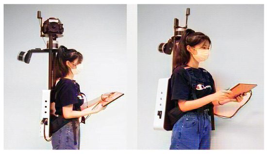 Due to the large amount of vegetation in the park and the serious obstruction of obstacles, this study used a 3D laser scanning technology backpack based on GeoSLAM technology. The characteristics of this backpack are that it does not require global satellite navigation (GNSS) signals and has strong environmental adaptability, as shown in Figure 2.
