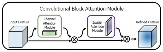 This study drew inspiration from the CBAM (convolutional block attention module) [37] to perform feature weight allocation. The structure is illustrated in Figure 6.