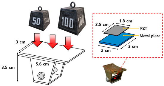 Nguyen et al. [31] showed that the thicker the adhesive layer, the less piezoelectric damage is possible. In this paper, EMI errors occurring in the adhesive layer can be blocked because it is not used, and it is made detachable by utilizing this. And through experiments, we propose the effect of weight on damage detection and monitoring by building PZT sensors using different weighting devices.