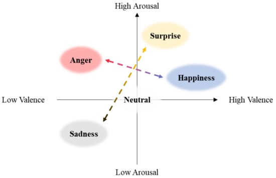 - Russell, J.A. A circumplex model of affect. J. Personal. Soc. Psychol. 1980, 39, 1161–1178. [Google Scholar] [CrossRef]