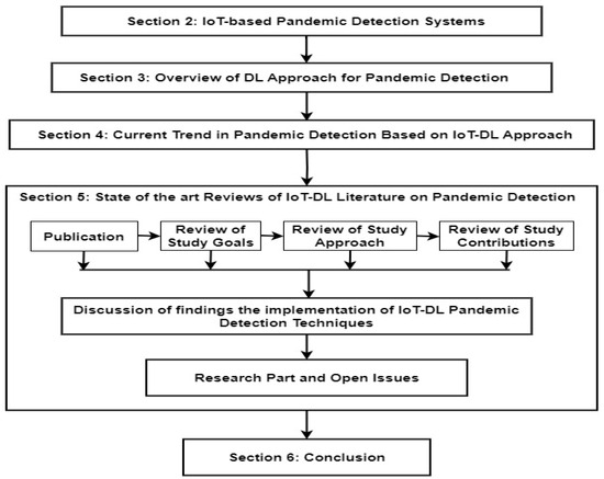 This comprehensive review seeks to identify the challenges facing existing IoT-DL-based techniques in achieving optimal COVID-19 detection. Therefore, the goal of this study was achieved to provide key contributions in Section 1.1 and it was articulated with the study organization in Figure 2.