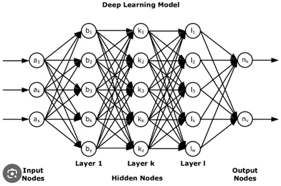 To identify COVID-19 or order related infectious diseases, RT-PCR or medical data analysis are required. Researchers are focusing on automated computer-aided procedures since scanning and interpreting medical data is costly and time-consuming. The use of DL for COVID-19 detection is examined in this section. Since the middle of the 1960s, medical imaging techniques have been utilized to help diagnose chest problems [38,39]. During the mid-1980s, one of the most common uses of computer-aided diagnosis systems (CAD) was for the diagnosis of cancer through chest X-rays [40,41,42]. Convolutional neural network (CNN) models have been utilized by researchers more recently to classify diseases based on medical imagery [43]. Another area of research and development is the COVID-19 pandemic. To detect COVID-19, ML and DL are currently widely used. The latest pandemic has provided a significant boost to DL techniques for COVID-19 infection detection from photos. The present study is unique in that it concentrates on the challenges related to DL and image processing techniques for COVID-19 detection. The normal range of data dimensionality in medical picture analysis and computer-assisted intervention is from two to five dimensions. Volumetric pictures are captured by many medical imaging methods, including as MRI, CT, PET, and SPECT. Multiple images collected over time, known as longitudinal imaging, are commonly used in interventional settings and are therapeutically beneficial for assessing the development of disease and organ function [40,44,45]. An online version of the DL model workflow in [45] is presented in Figure 4. There are input layers or nodes, the neural networks present as hidden nodes or layers, and the output nodes or layers. These nodes or layers can be modified to improve the performance of the networks. However, manual modifications or alterations are hectic and ineffective. It is worth noting that DL models typically require no feature selection due to the design of the architectures.
