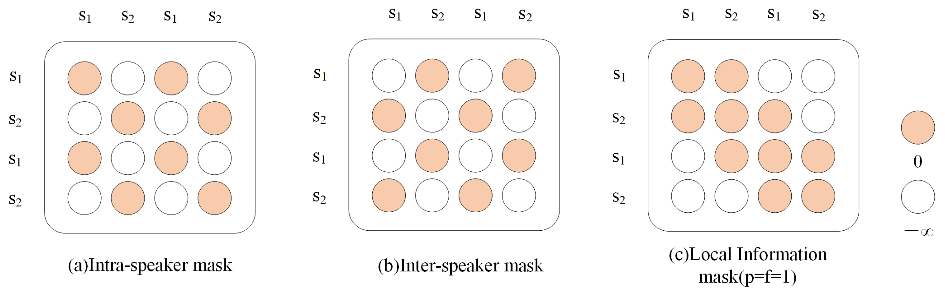 w/o inter-speaker mask | 72.58 | 72.94 | 64.70 | 64.30 |