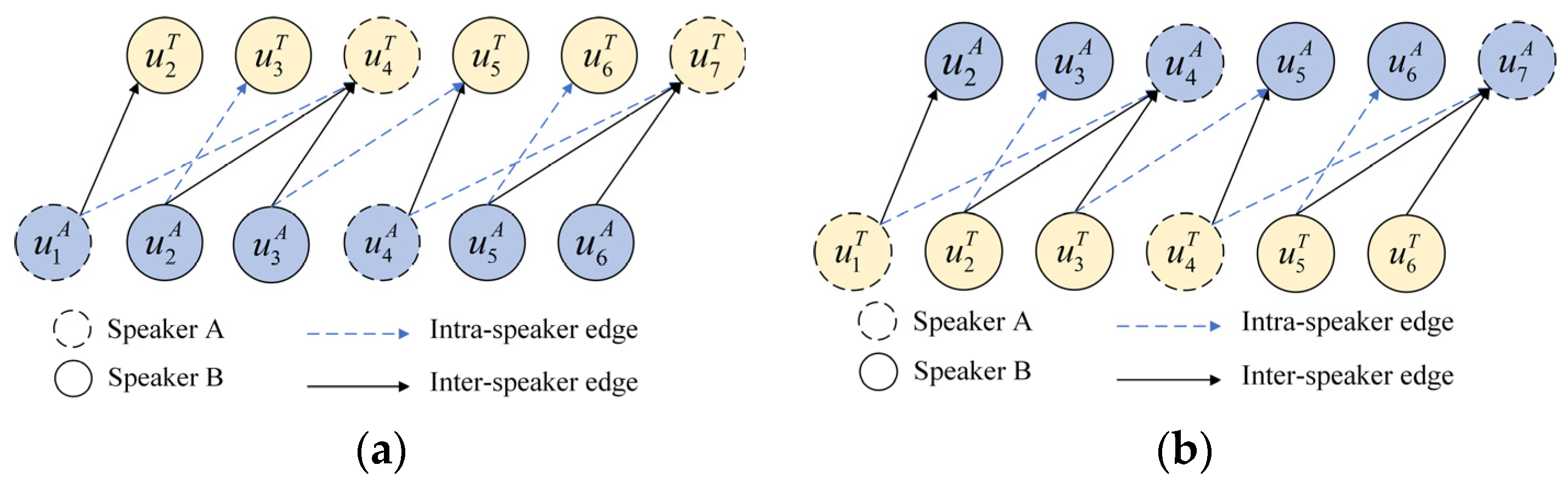 - Shen, W.; Wu, S.; Yang, Y.; Quan, X. Directed Acyclic Graph Network for Conversational Emotion Recognition. In Proceedings of the 59th Annual Meeting of the Association for Computational Linguistics and the 11th International Joint Conference on Natural Language Processing, Online, 1–6 August 2021; pp. 1551–1560. [Google Scholar]