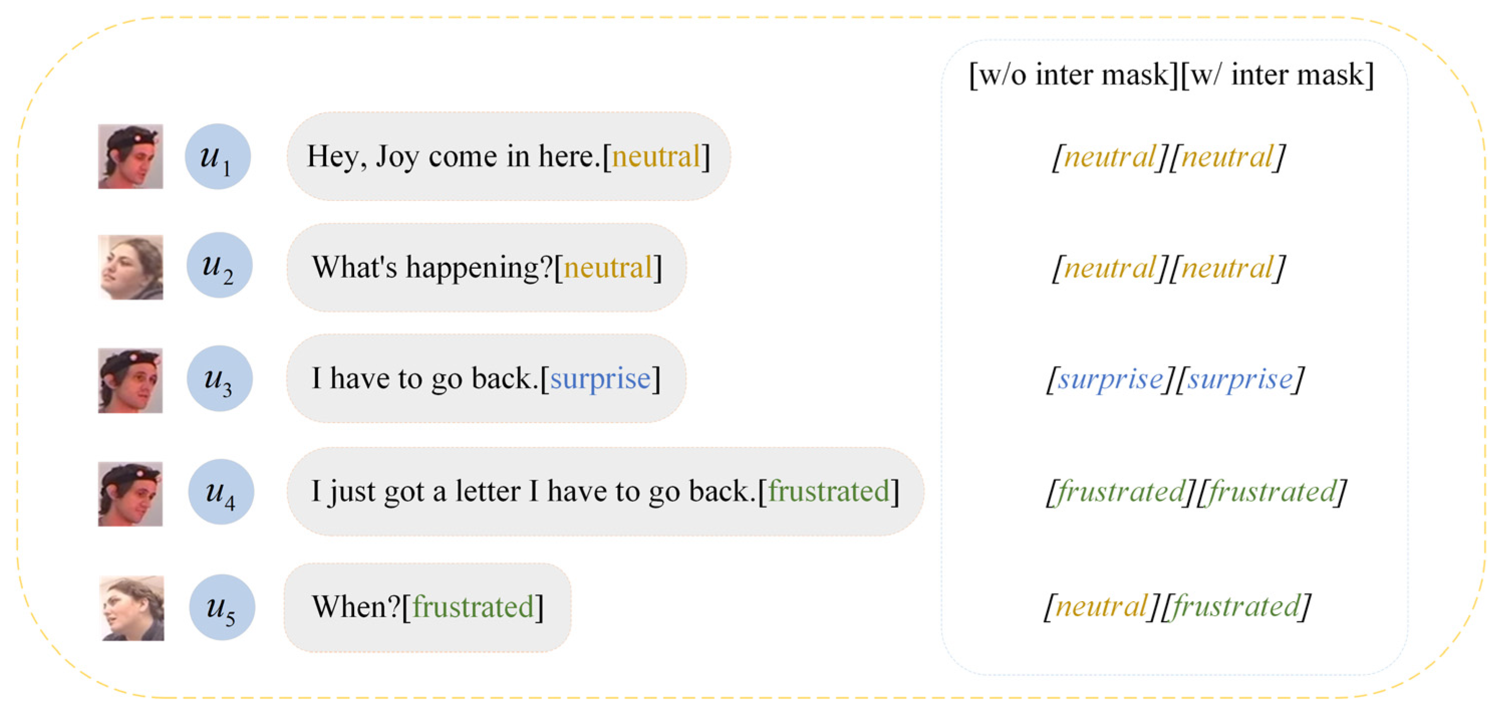 - Yang, J.; Dong, X.; Du, X. SMFNM: Semi-supervised multimodal fusion network with main-modal for real-time emotion recognition in conversations. J. King Saud Univ. Comput. Inf. Sci. 2023, 35, 101791. [Google Scholar] [CrossRef]