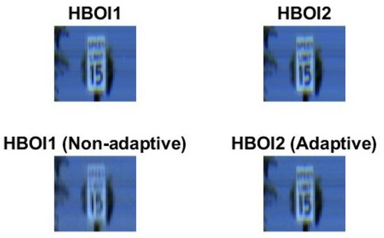 Figure 9 shows the reconstruction of the speed limit sign found in the HBOI images. These results explore the ability of our approaches to recover spatial details. We found that the initial probing scheme (i.e., results on HBOI1) seemed to be better at picking up spectral details in comparison to the adaptive patterns. This is evident in the plots of Figure 8 and Figure 10, where the HBOI1 reconstruction provided an endmember with more curvature details, while the adaptive HBOI2 signature gave a smoother estimate. In terms of spatial details, in Figure 9, it is clear that the adaptive result of HBOI2 provided a sharper image of the speed limit sign compared with the blurry output of HBOI1. These observations imply an interesting tradeoff between adaptive and non-adaptive techniques to reconstruct spatial vs. spectral details, which is informative for practitioners. However, we note that adaptive samples were designed to minimize the amount of patterns that needed to be transmitted. This limitation was due to our focus on remote sensing scenarios, and thus, the adaptive results may be improved by allowing for more spatially varied patterns.