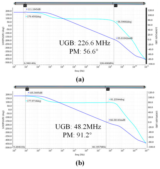 As shown in Figure 13, the UGB of the proposed LA was 226.6 MHz, which is four times the one without the SRE circuit.