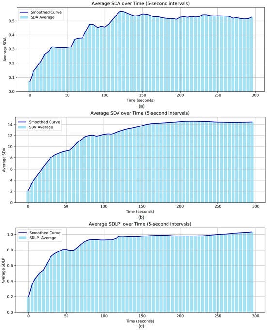 Standard deviation of steering wheel angle (SDSWA) (degrees): This measure offers insight into the vehicle’s lateral dynamics. A higher value in this measure suggests more significant lateral adjustments made by the vehicle [45].