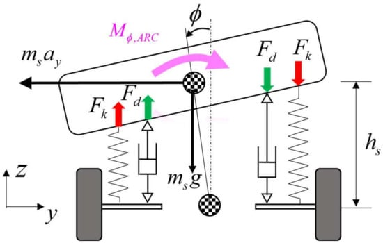 The purpose of the target anti-roll moment is to yield the desired roll angle of the sprung mass, the calculation of which is based on Equation (1):
