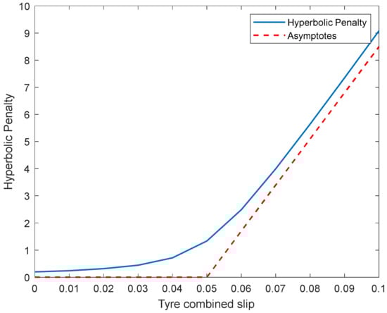 Next, the hyperbolic type of tire slip motion penalty function is formulated as follows: