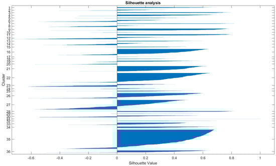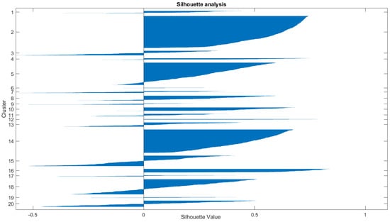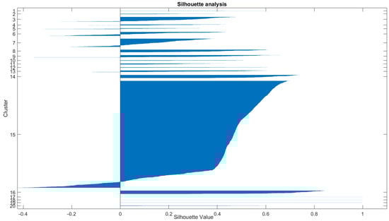 Figure 15) to enhance the algorithm’s effectiveness in interpreting and deciphering the dataset. The silhouette analysis was present in each test.