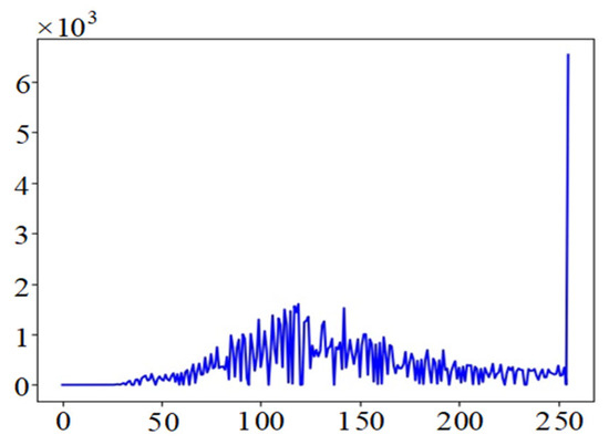 where represents the color restoration coefficient for the i-th channel, is the nonlinear adjustment coefficient, and is a constant. The brightness histogram of the image to be detected is divided into three frequency bands, as shown in Table 4: