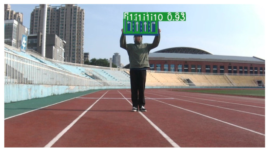 The third step involved the detection and recognition of four-lane traffic signboards. The optimal model parameters previously trained with the YOLO algorithm were applied to detect and recognize traffic signboards in each preprocessed frame. The detection and recognition results are depicted in Figure 17.