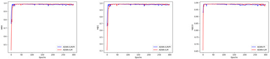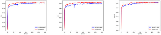 The training curves of AGNN-ILM employing graph neural networks with varying numbers of layers are illustrated in Figure 10. The training curves of AGNN-ILM indicate that as the number of layers in the graph neural network increases, the convergence of the model gradually decreases. The performance of AGNN-ILM reaches equilibrium after 40 epochs when . However, the model performance reaches equilibrium after 200 epochs when . The larger the number of layers in graph neural networks, the slower the convergence speed of the model. Increasing the number of network layers does not always enhance performance. On the contrary, it may result in performance degradation. Therefore, selecting an appropriate number of network layers is crucial to ensuring the performance of the model.