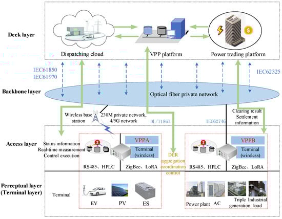 - Zhang, H.; Li, J.; Wu, Q.; Wu, S.; Zhu, S.; Zhang, T. Communication Network System Architecture and Communication Mode Adaptation Method for Virtual Power Plant. Electr. Power Inf. Commun. Technol. 2022, 20, 47–54. [Google Scholar]