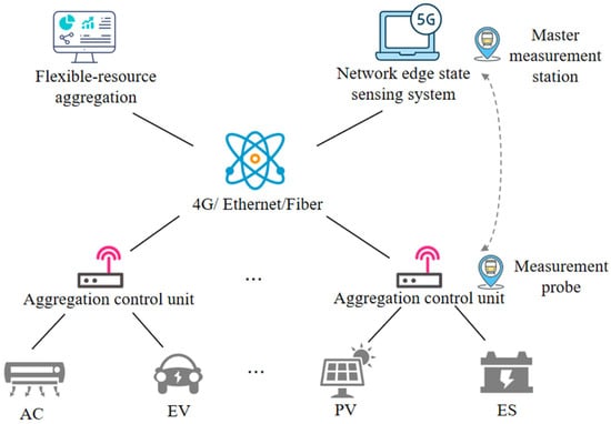 A flexible-resource aggregation and control network that accesses the public network is classified as a typical uncontrolled network. The deployment range of measurement probes is relatively limited. Due to cost and security considerations regarding the deployment of measurement probes, they can be deployed within controlled aggregation control units. They can be extended to perform the functions of the master measurement station within the edge state perception system of the cloud network. This forms the out-of-band measurement architecture as shown in Figure 2.