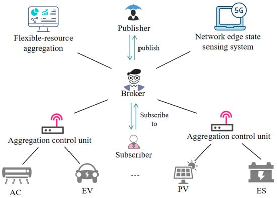 Due to the diverse types of data sources, numerous participating users, novel application functionalities, and high future scalability requirements involved in an aggregated control network for flexible resources, its overall architecture often adopts a layered design approach. Through system layering, different layers’ functionalities address corresponding issues at each level. As shown in Figure 1, the typical architecture of an aggregated control network for flexible resources is illustrated.