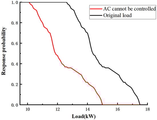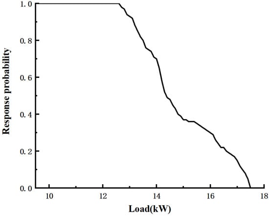By sorting the load of a household user in the residential area based on historical data, the original responsive load curve of the user without considering delay is obtained, as shown in Figure 12. It represents the total load of the household, with the response probability indicating the success rate of the response. The horizontal axis represents the user load, and the vertical axis represents the response probability.